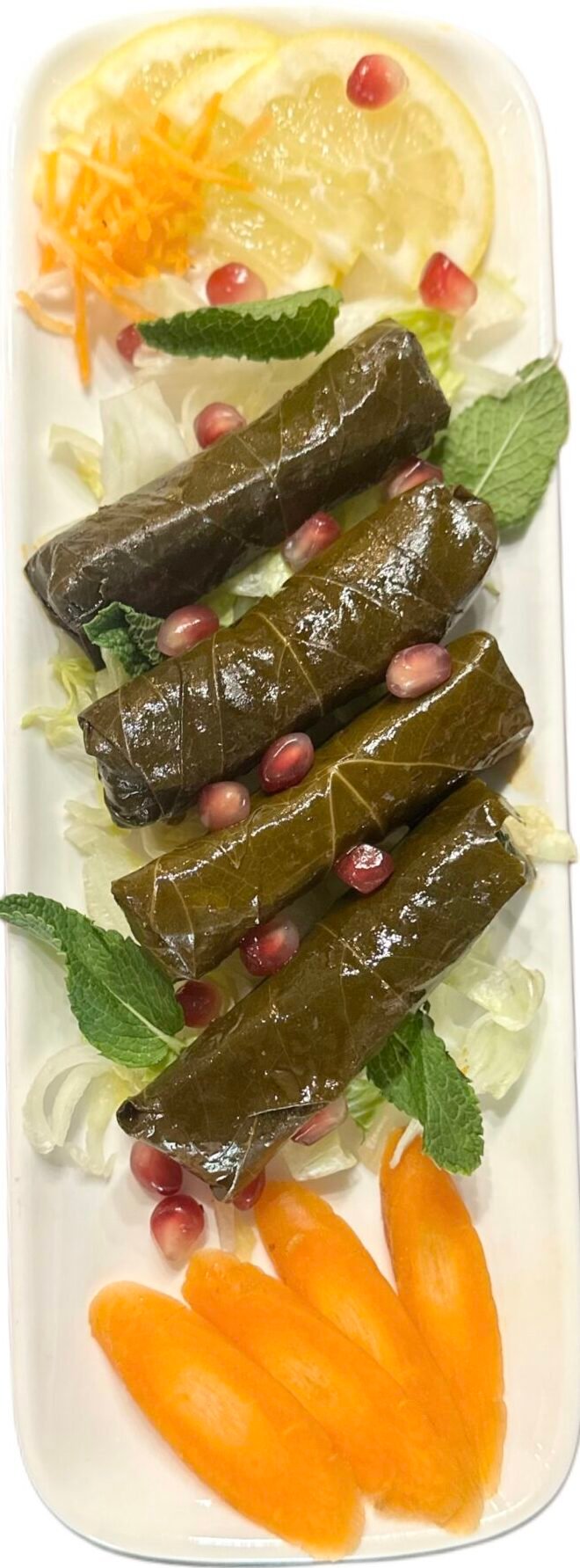 Délicates feuilles de vigne farcies de riz assaisonné et d’herbes.